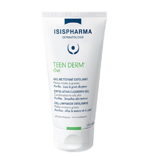 A l'extrait de Menthe verte BIO Contient du fluorure de sodium (1450ppm) Convient aux femmes enceintes ou allaitantes Sans dioxyde de titane, sans sulfate, sans silice, Sans huiles essentiellesisispharma-teen-derm-gel-nettoyant-exfoliant-150ml