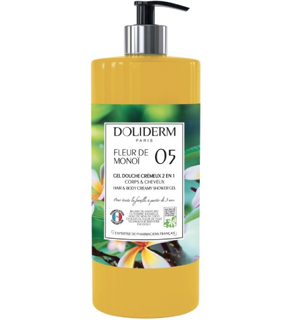 Le temps d’une douche ou d’un bain, notre gel douche crémeux 2 en 1 Doliderm Fleur de Monoï 05 vous plonge dans de délicieux souvenirs d’été et ensoleille votre quotidien. Riche en beurre de karité biologique, il nourrit votre peau en profondeur et améliore le confort de votre peau sensible ou sèche. Le monoï, obtenu par macération de fleurs de tiaré dans de l’huile de coco, a de nombreux bienfaits : les tahitiennes qui exposent leur peau à la mer et au soleil l’utilisent pour ses vertus hydratantes et réparatrices. La technologie FUCOGEL® issue d’actifs végétaux, cible les sensations de tiraillement des peaux sensibles. Protégée, votre peau est douce et délicatement parfumée.