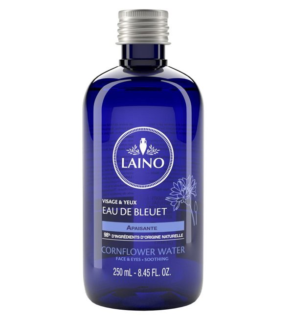L’eau de Bleuet de LAINO, la fleur aux vertus adoucissantes et apaisantes. Visage et contour des yeux