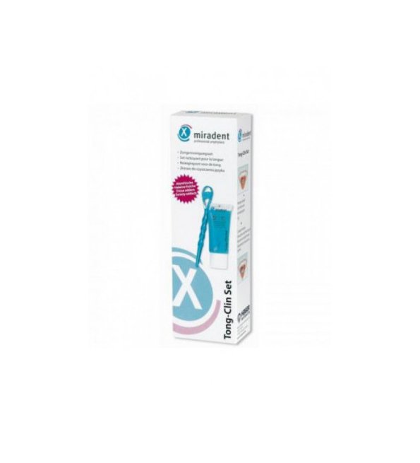 En cas de mauvaise haleine (nettoyage de langue) – très efficace et indoloré Une forte odeur buccale provient souvent de dépôts de bactéries sur la langue, langue blanche. Ces dépôts perturbent l’équilibre et donnent lieu à une augmentation de la plaque dentaire sur les dents. Le Miradent Tong-Clin Gel vous offre la solution idéale pour l’enlèvement efficace et indolore des dépôts sur la langue et est facile à utiliser avec le Tong-Clin Deluxe. L’utilisation d’une brosse à dents n’est pas recommandée pour diverses raisons (hygiène, soies trop longues, haut-le-cœur). Le nettoyage de la langue réinventée Une gratte langue traditionnelle “racle” la plaque de votre langue ce qui peut créer des blessures, très souvent combiné avec le haut-le-cœur. Pas du tout avec le Tong-Clin Set de Miradent ! Le Tong-Clin Gel décolle la plaque de la langue et le Brosse à langue, le Tong-Clin Deluxe, a une forme ergonomique et aide ainsi à éviter le haut-le-cœur. Avantages: